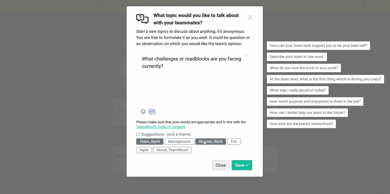 You can ask anything to your teammates on TeamMood, but it's sometimes hard to find the right question.