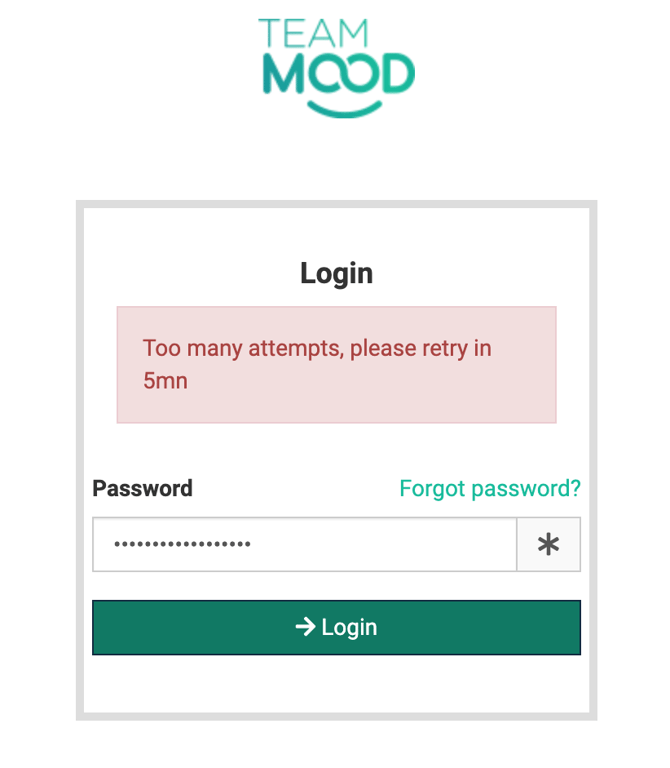 In order to increase security, and to prevent the TeamMood application from brute force attacks, we now lock an account for 5 minutes for 10 or more failed login attempts.