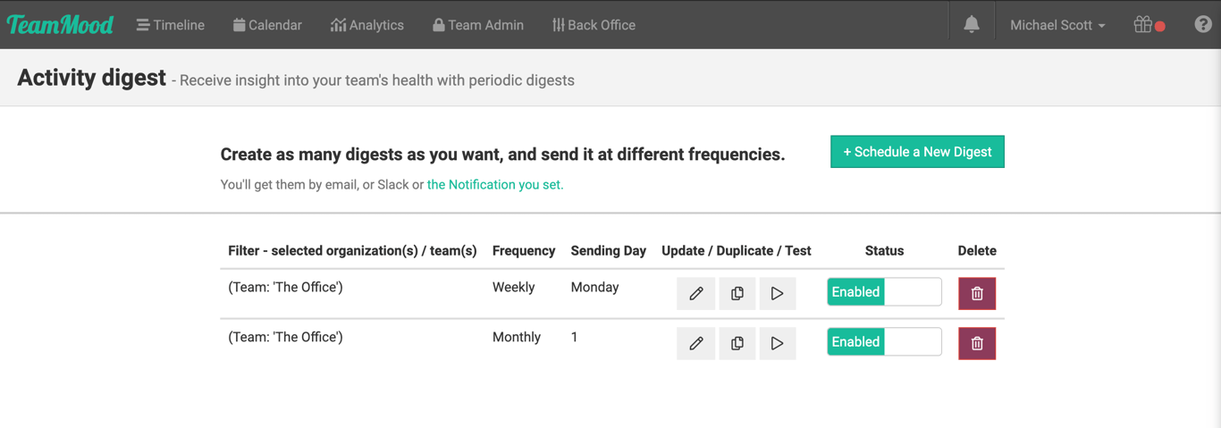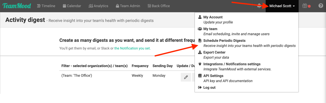 You can schedule Digests on a Monthly or Weekly basis, on whichever teams you want: