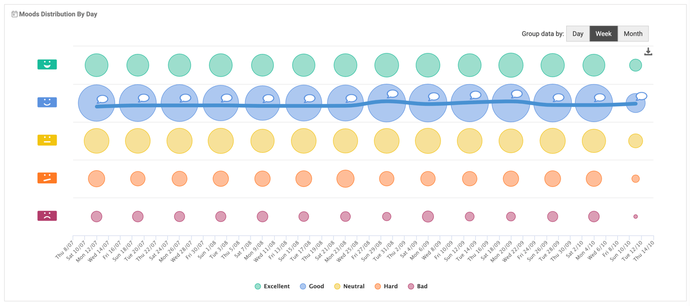 You can now group the moods by days, weeks or months, using the buttons on the right side of the Mood graph in the Analytics.
